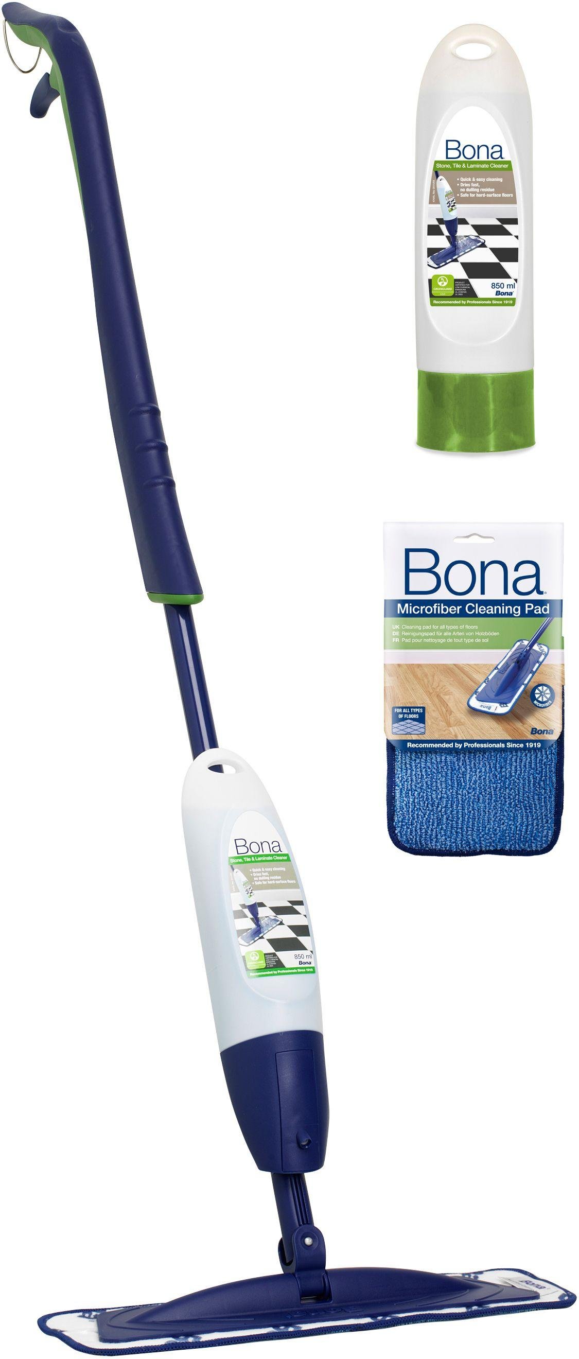 Bona Stone, Tile & Laminate Floor Cleaning Kit (CA101019021) from www1.bona.com If you have tile or laminate flooring, this product is a must! Products shown as available are normally stocked but inventory levels cannot be guaranteed. The kit comes with everything you would need to get started, including a mop handle with 4 in. I vacuumed, washed the floors using the bona laminate cleaner, let it dry and then applied this product also in the same way as if i'm cleaning but not pressing as hard. Not enough you can't walk normally, but do use caution. Product title bona hardwood floor cleaner refill, 96 fl oz average rating: Bona spray mop for stone, tile & laminate floors enables you to clean and maintain your floors in a sweep. Regular hard surface floor cleaning when your floor looks dirty, spray it with bona tile & laminate cleaner to dissolve the dirt.