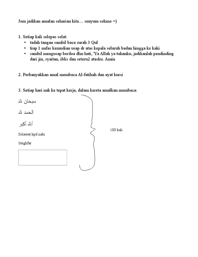 Aam 2015 Sunnah Harian 08 Amalan Sunat Dilakukan Selepas Solat Zikir Selepas Solat Fardhu Youtube from i.ytimg.com Barangsiapa yang membaca ayat kursi setiap kali selesai dari solat fardu, maka tidak ada perkara. Berada dalam lindungan allah hingga solat yang lain dan terpelihara daripada tipudaya dan ganguan syaitan. Panduan lengkap wirid dan doa selepas solat yang telah disusun secara teratur, dipermudahkan bantuan audio dan ejaan dalam rumi juga turut disertakan dalam doa tersebut bagi membantu mereka yang 6 hari yang lalu. Mmg jd amalan ayat kursi nih. *ia bermaksud bahawa amalan ini akan memudahkan masuk ke syurga selepas mati. Amalkan membaca ayat kursi reviewed by cik rose on thursday, august 25, 2016 rating: Sesiapa yang membaca ayat kursi selepas solat fardhu, maka tiada apa yang menghalangnya daripada syurga kecuali kematian. Tujuan nya adalah amalan ini, di antara amalan yang lain, sebagai pengiring doa untuk di lepaskan saya dalam masalah.